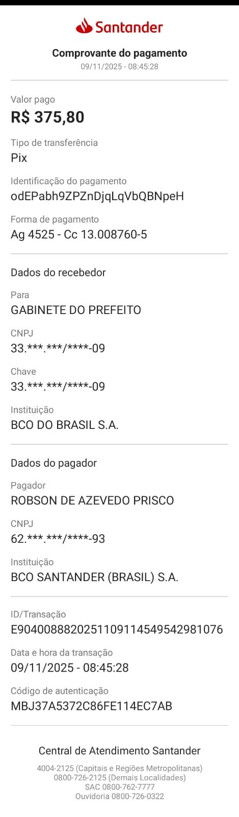 Comprovante do Pagamento: